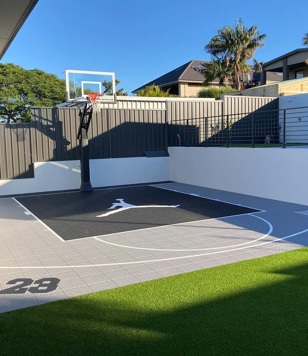 Proudly WA owned and operated, Custom Courts offers a personalised service, full package option from the initial site visit, design, concrete slab, basketball ring and full installation of court and ring. We offer the highest quality cushioned court tile at the best price.